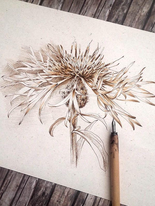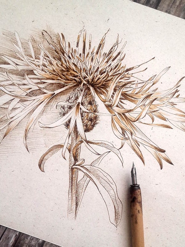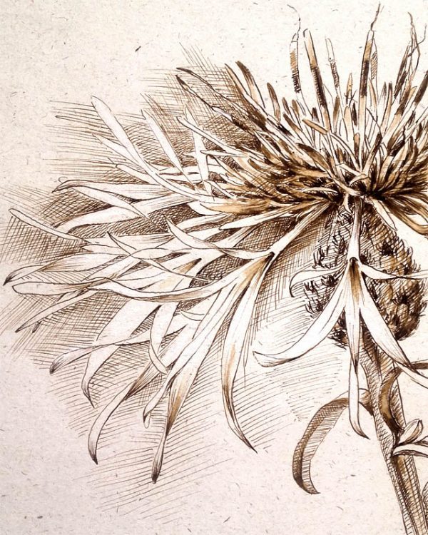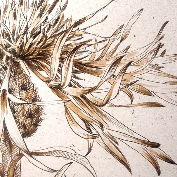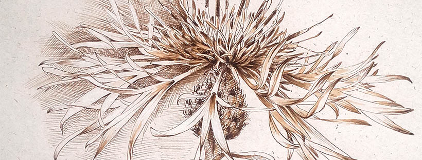 Centaurea, knapweed – ink, dip pen and brush on recycled paper