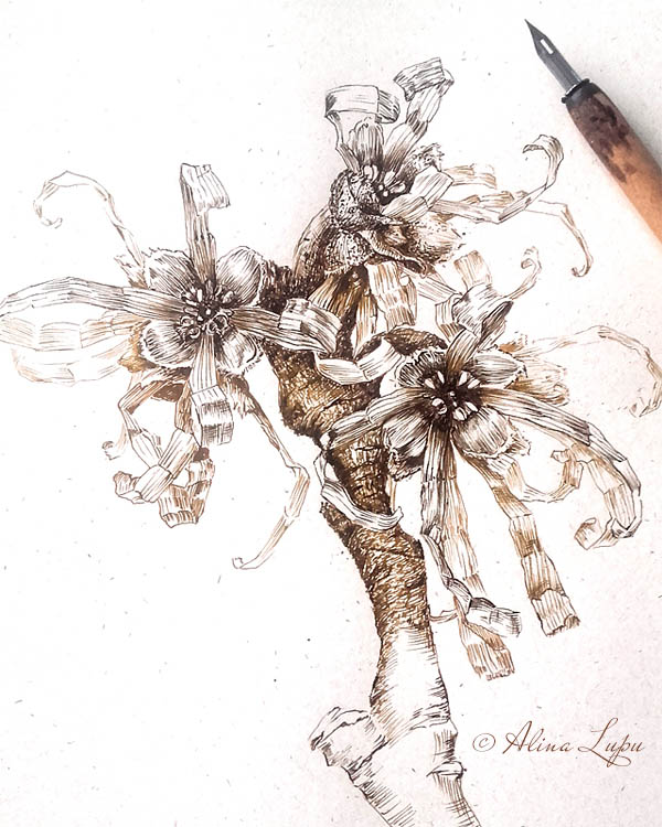 Winter blooms – Hammamelis mollis February 8, 2020July 15, 2020 Hammamelis mollis, 2020 Dip pen and ink on paper Share this: Click to share on Facebook (Opens in new window) Facebook Click to share on X (Opens in new window) X Related