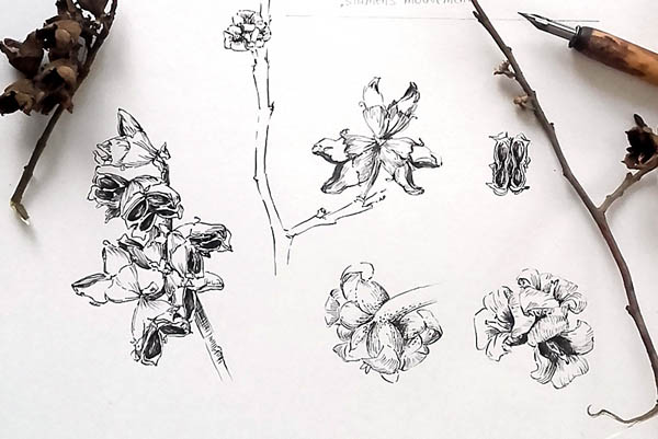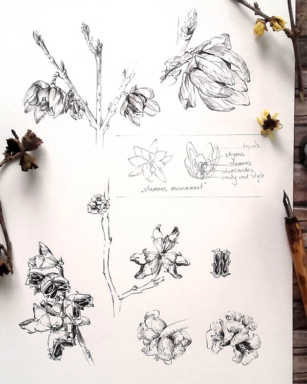One thought on “Chimonanthus and hammamelis – flower and fruit sketch”