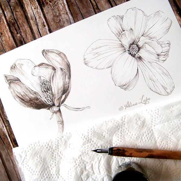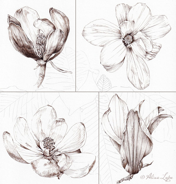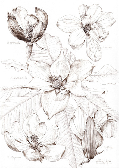 The quarantine here is over, so last week illustration was dedicated to Magnolia flowers. I`m lucky to live nearby an Arboretum with 17 species and varieties of Magnolia trees and more than 40 specimens. Walking through an area dominated by these magnificent trees, especially those with big leaves, like macrophylla and obovata, feels like a walk in an lush, ancient, tropical forest… I wanted the illustration to convey this feeling, I hope I succeeded.