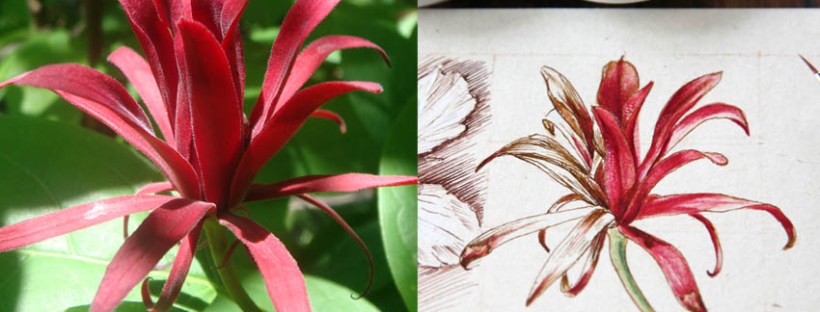The plant it’s part of the Magnoliid clade and it is closely related to Chimonanthus, another fragrant shrub, whose flowers you have often seen me sketching in winter.
