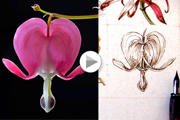 In today’s video I’m drawing the bleeding heart flower with sanguine and ink.