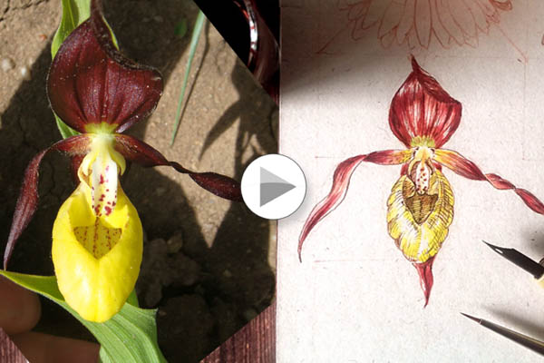 In today’s tutorial I’m sketching the flower of Cypripedium with ink and watercolor.