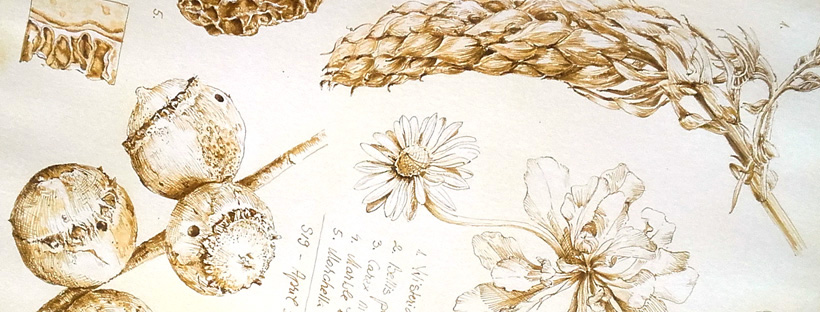 The botanical sketches from this week: Primula veris, Adonis vernalis fruit, Asarum europaeum and Acer negudo.